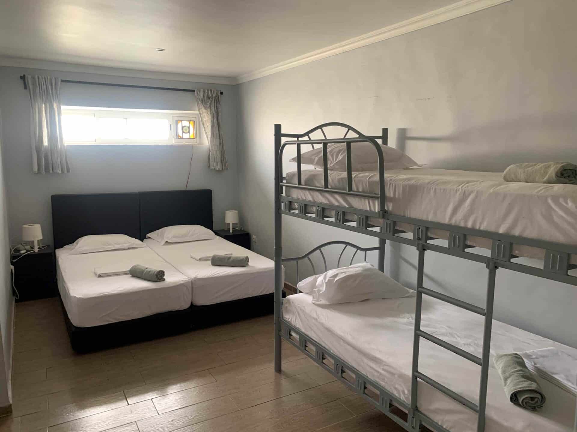 1 Double or 2 twin beds and bunk bed