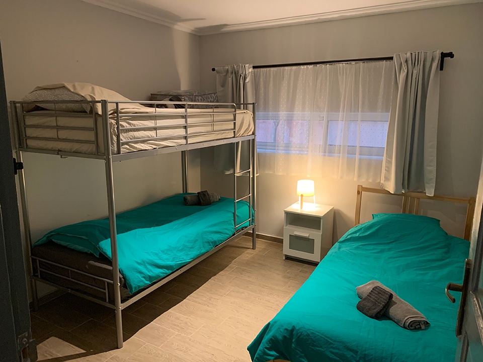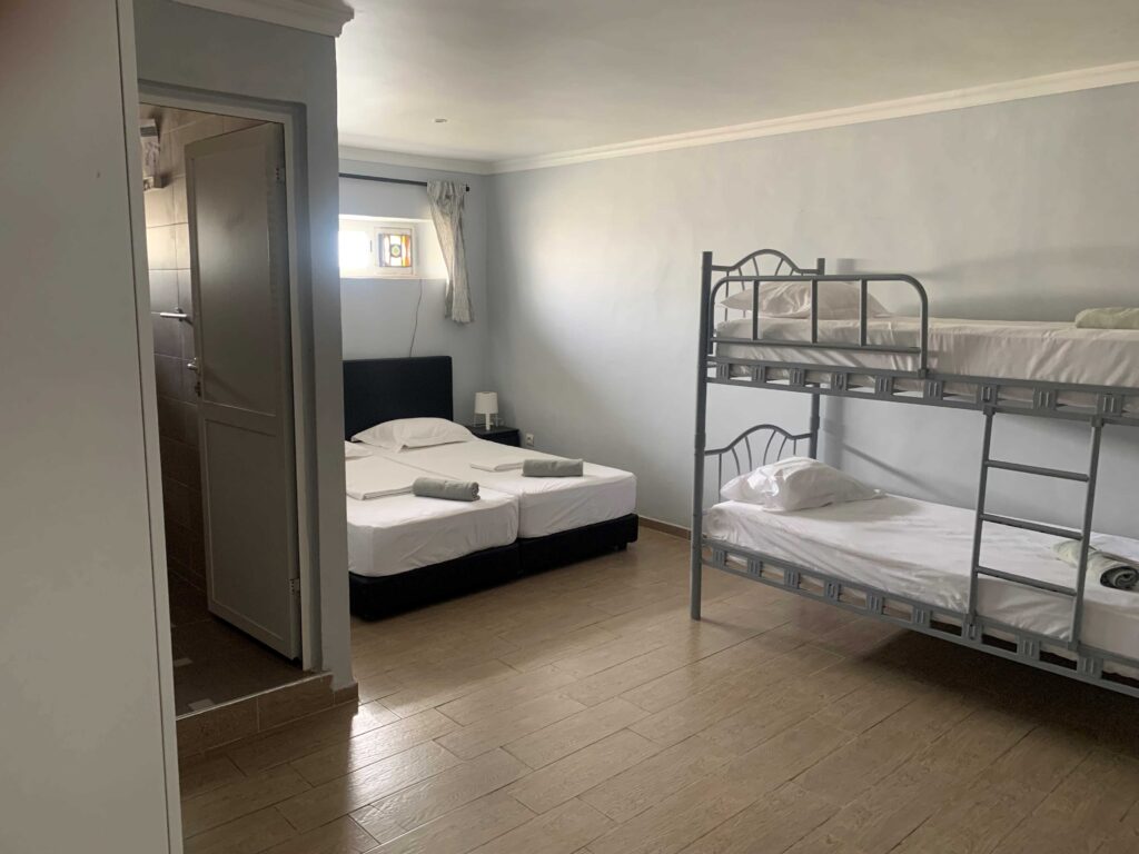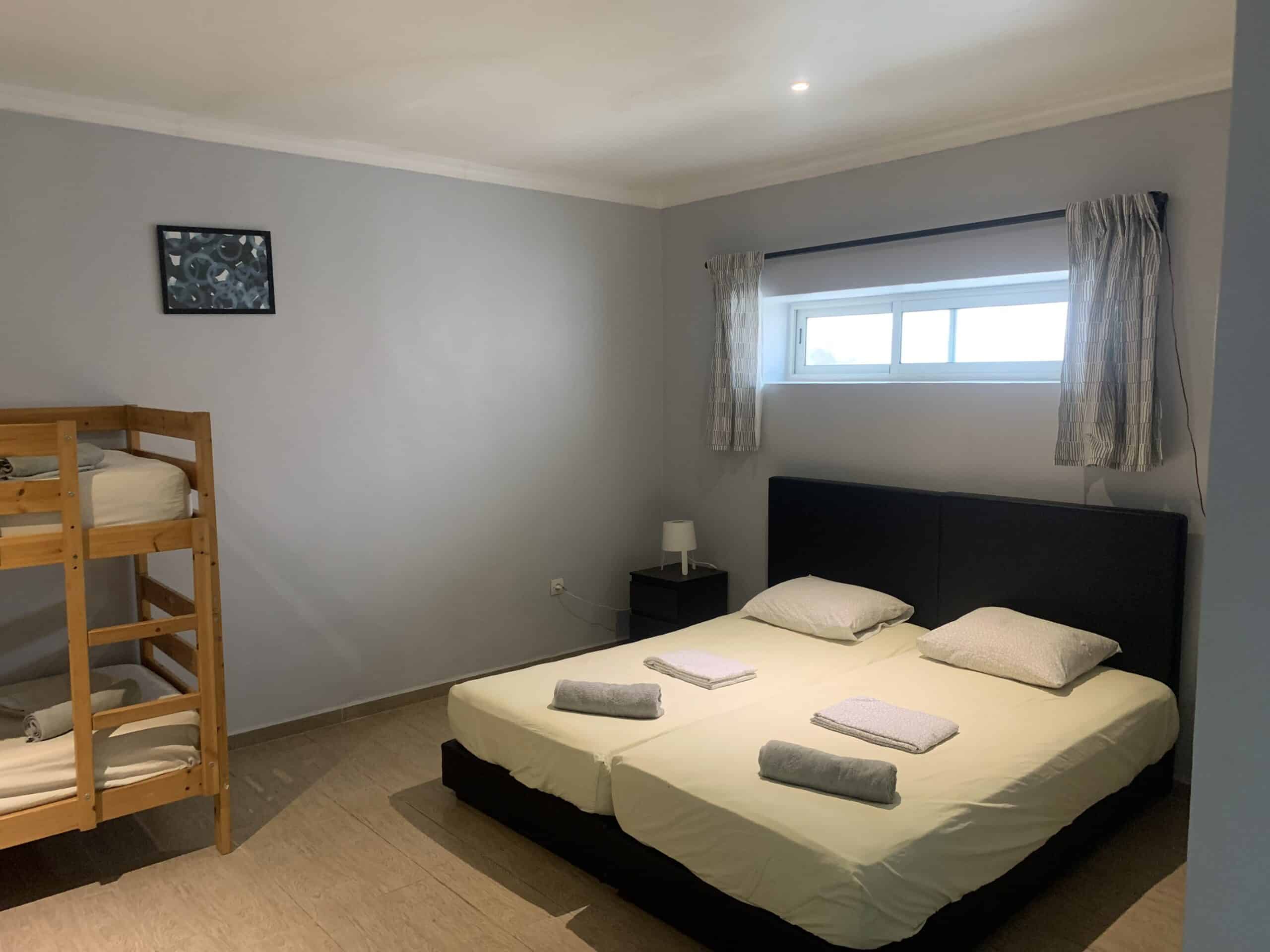 1 Double bed, 1 single bed and 1 double-bunk bed